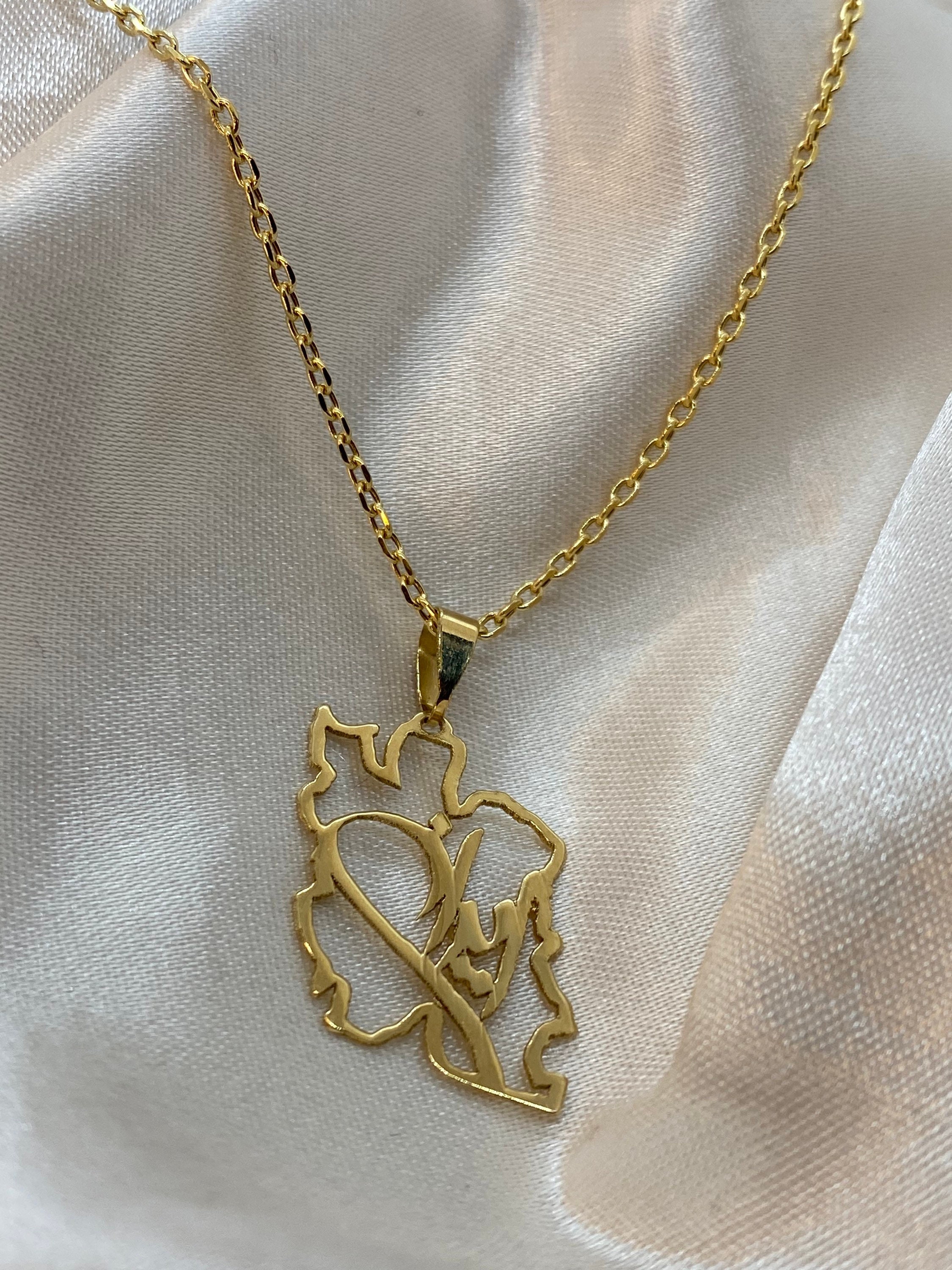 18k Gold Handmade Iran's Map necklace ,18", 3.54 gr made in Toronto, Canada.