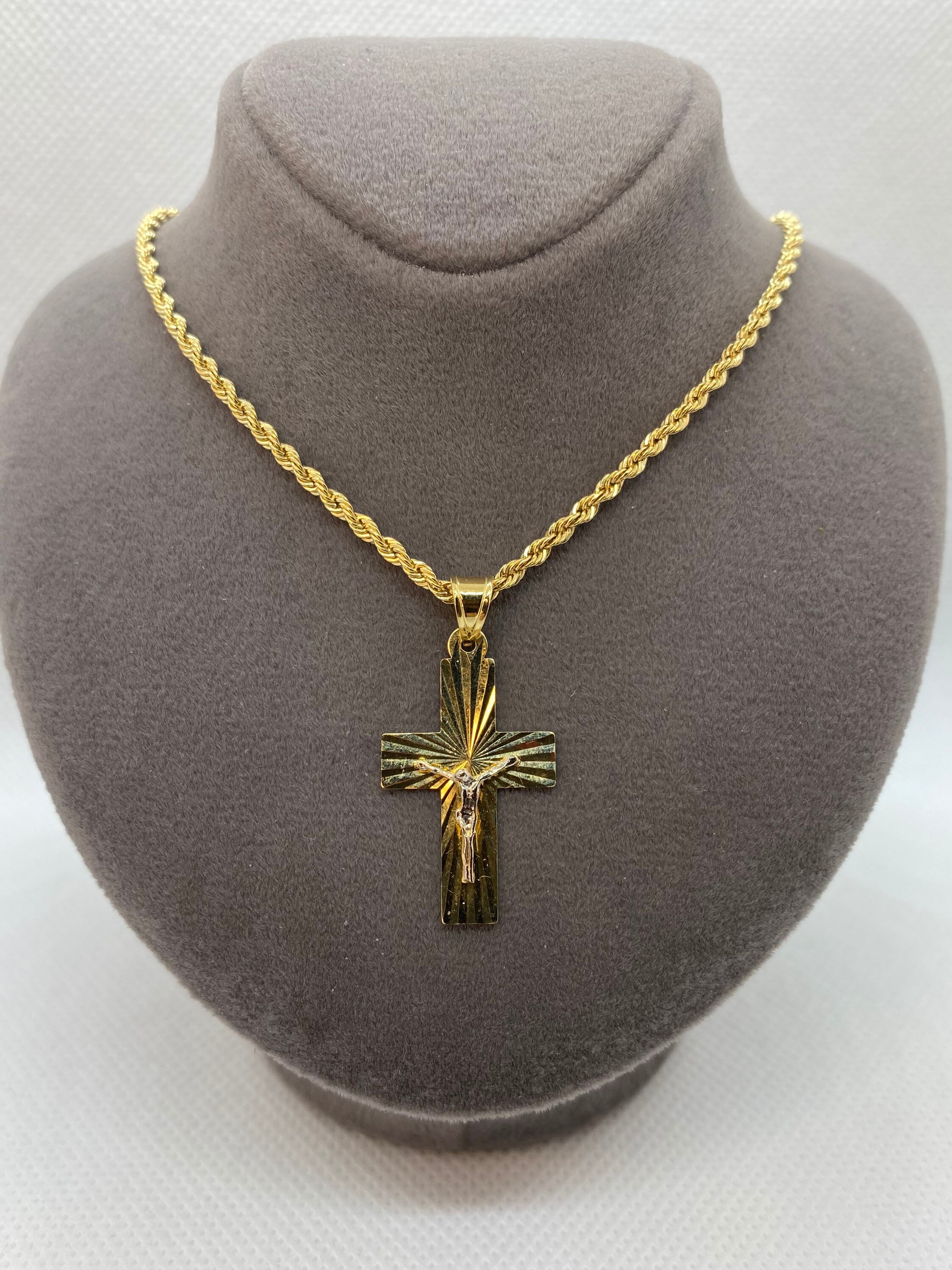 This is a Trending Etsy Bestselling ROPE and Cross Necklace. It is made with Authentic Genuine Solid 18K Gold.